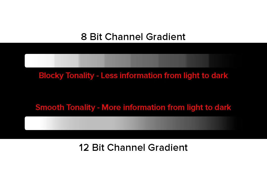 Why do you need a trillion colors if it’s imperceptible to the human eye? What’s the point? The point is that you want the highest possible quality at your disposal. Those million shades of “extra” color allow for a smoother representation of reality. More shades of luminance (shades between black and white) mean more retention of shadow and highlight data, as well as smoother light roll off.